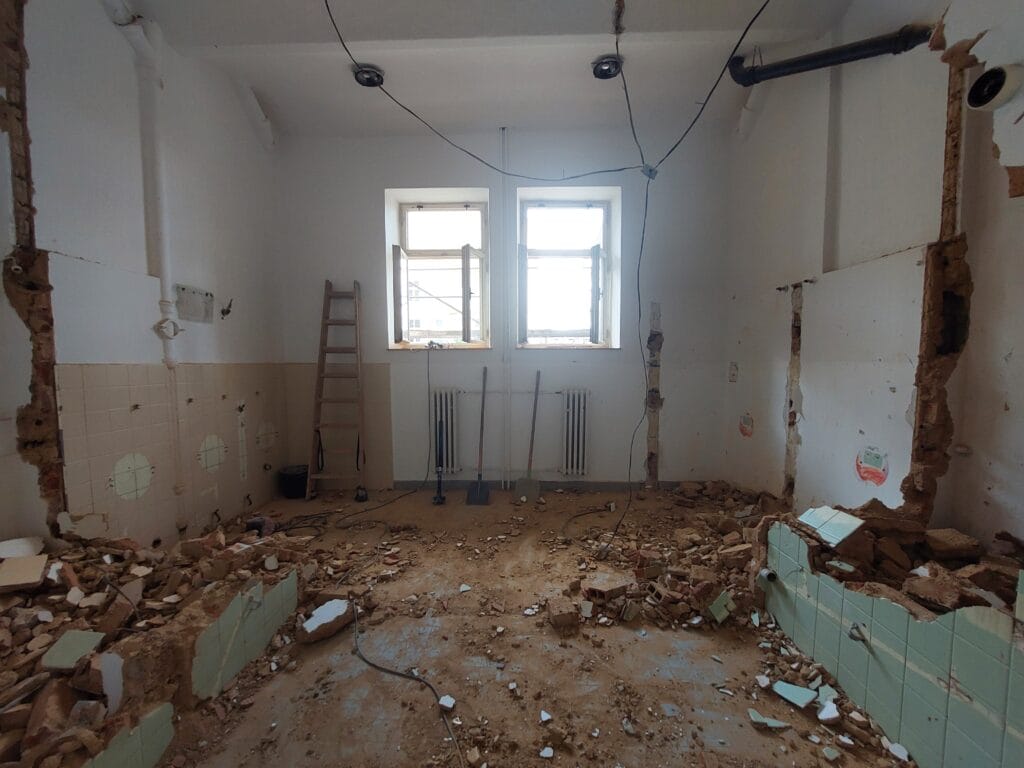 28. 6. v poledne začaly bourací práce. Aktuálně jsou záchody u bývalé 10. třídy téměř vybourané a u 1. třídy jsou svěšená umyvadla.