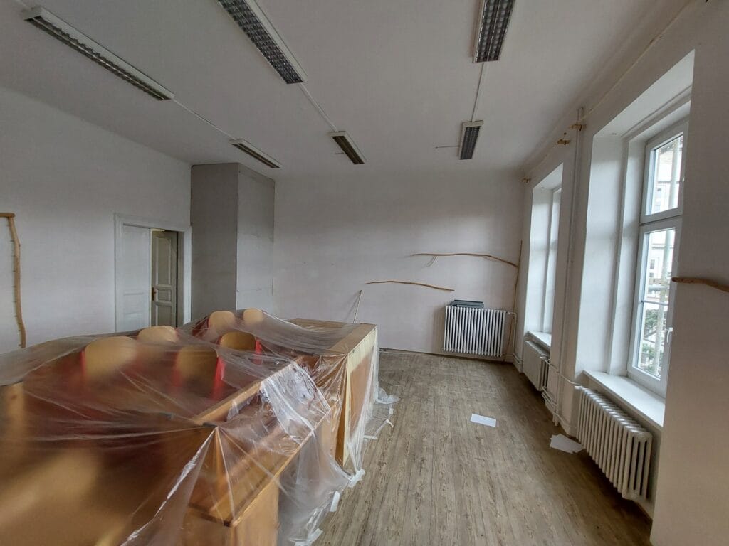 Středa 29.5. – osazování bývalé 9. třídy = uzavřeny 7. třída (bývalá FyChe), zadní družina (do náměstí dál od vchodu) + družinová kuchyňka + toaleta, dřevořezba (přední místnost)