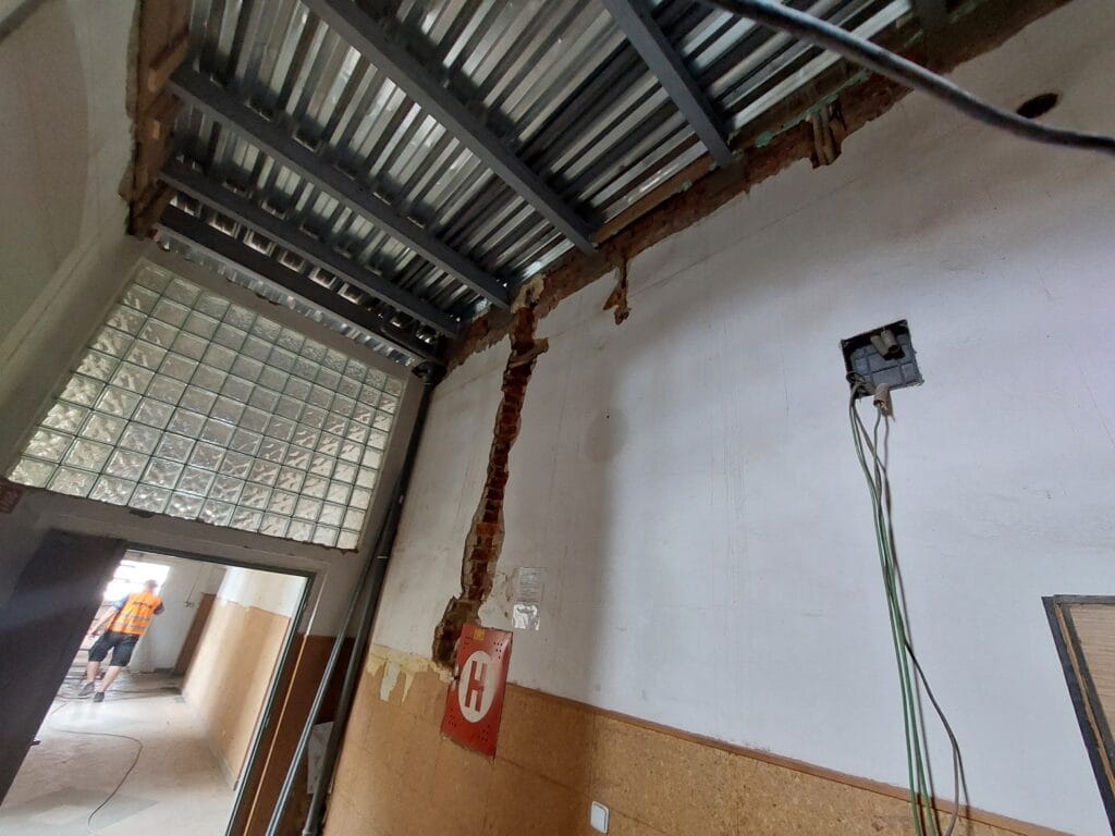 V polovině 2. patra je staveniště, na které máme vstup zakázán. Probíhají zde přípravné stavební práce a během pár dní tam začne výměna stropů. Ta bude probíhat postupně po etapách od prostředka budovy (sborovna) ke kraji (výtah).