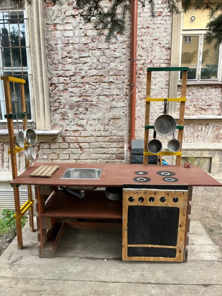 Dva týdny jsme společně pracovali na místě, které víc než rok sloužilo jako sklad materiálu při rekonstrukci. Teď jsme ho proměnili zpátky v prostor plný života. Postavili jsme nové kompostéry, dětskou kuchyňku, opravili smyslový chodníček a udělali podestu pod bunkr. Zároveň jsme odstranili nevyužívané záhony a upravili celý prostor tak, aby dětem z družiny dobře sloužil.