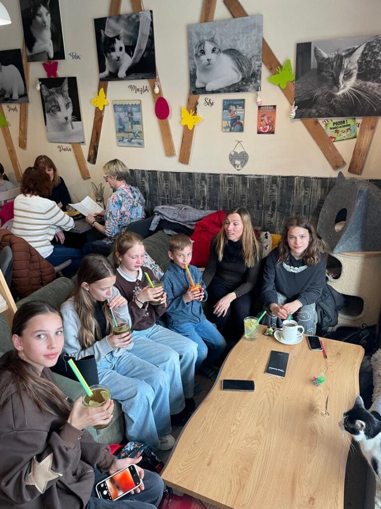 Odpolední a večerní program probíhal v režii hostitelských rodin a byl velmi různorodý. Děti měly možnost zažít řadu neformálních setkání a aktivit, od společných výletů až po návštěvy míst, jako je kočičí kavárna nebo laser game.